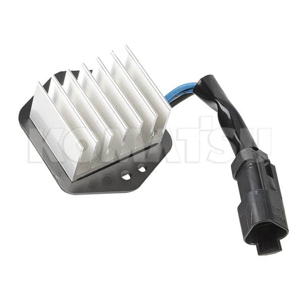 Air Conditioner Controller with dimensions 6.35 x 6.99 x 11.43 cm. Fits various Komatsu machines including Wheeled Loaders and Trucks.