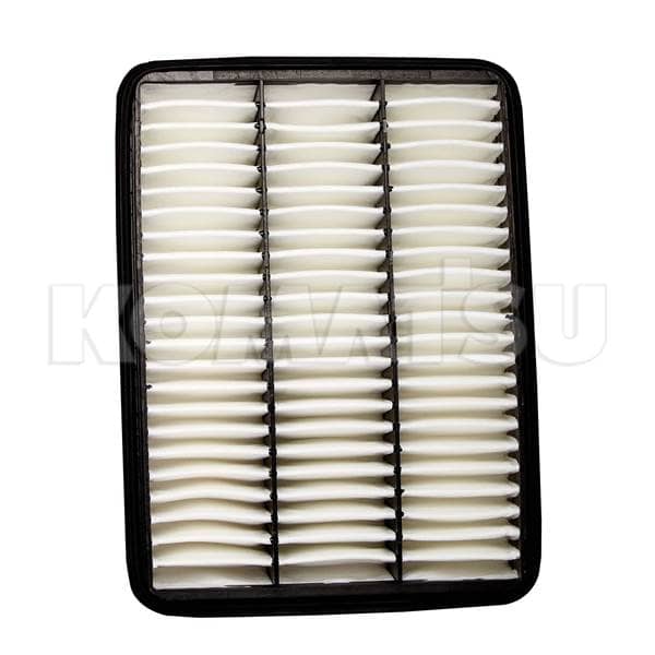 Rectangular Air Filter with a black frame and pleated white filter media. Designed for Komatsu machines to ensure reliability and meet original factory specifications.