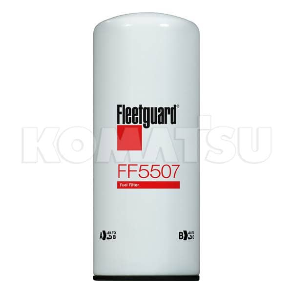 Fleetguard Fuel Filter with dimensions 10.8 x 10.8 x 26.0 cm. Designed for both Komatsu and non-Komatsu equipment, ensuring effective filtering for scheduled maintenance.