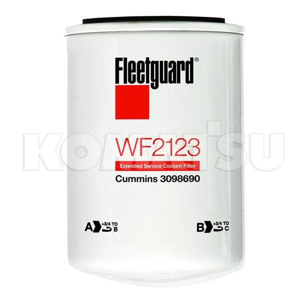Fleetguard extended service coolant filter WF2123 with dimensions 15.2 x 10.2 x 10.4 cm. Suitable for Cummins 3098690. Ensures optimum performance and longevity for Komatsu machines.