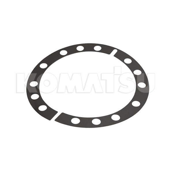 Circular metal differential shim with dimensions 27.2 x 27.2 x 0.03 cm. Fits various Komatsu Wheeled Loaders models.
