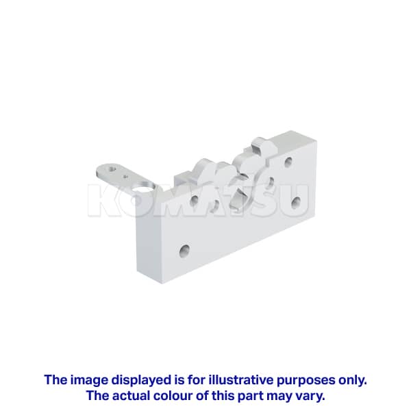 Stainless steel industrial door hinge with dimensions 6.0 x 11.5 x 7.0 cm. Features multiple screw holes and a pivoting mechanism. Suits various Komatsu Wheeled Loaders.