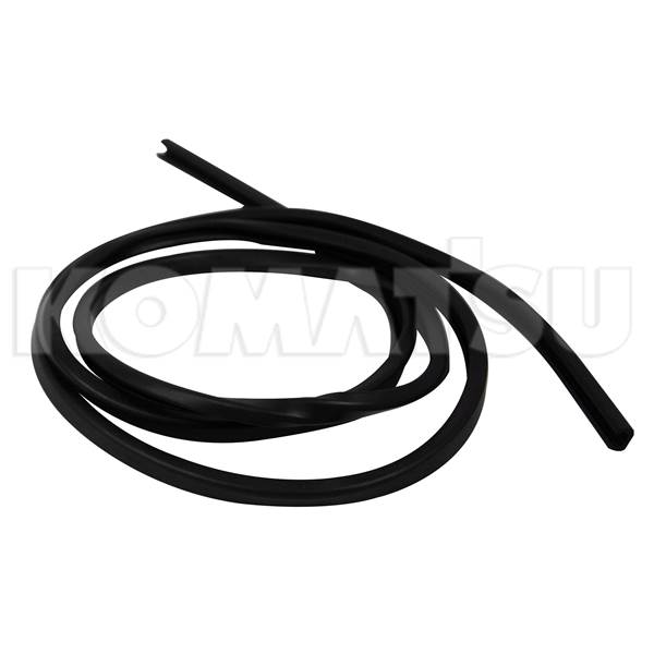 Weather Strip for Komatsu WA600-8. Flexible black rubber or plastic strip with rectangular cross-section. Weight: 0.07 kg. Suits various Komatsu machines.