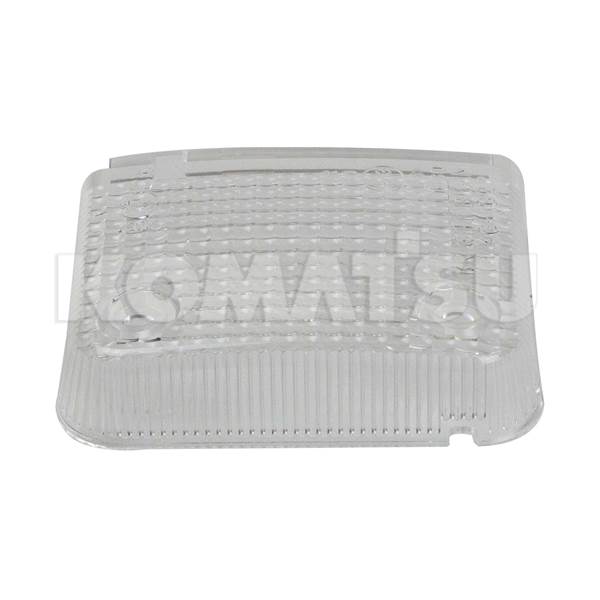 Plastic Lens Cover with dimensions 5.0825 x 15.2425 x 22.8625 cm. Suits various Komatsu Wheeled Loaders models.