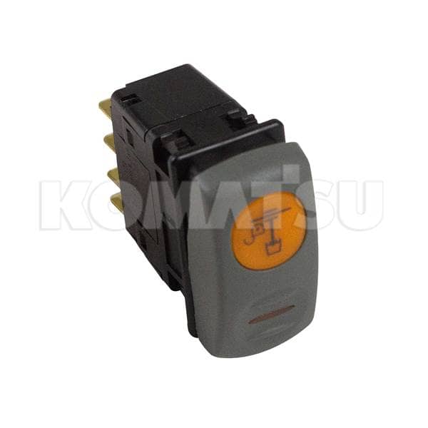 Rocker switch with orange indicator light, designed for controlling equipment. Fits Komatsu models WB97R-5E0, WB97S-5E0, WB93R-5E0. Weight: 0.04 kg.