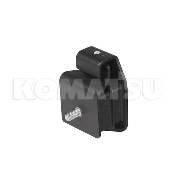 Cushion Mount Bracket with cylindrical hinge component and bolt. Weighs 0.8799 kg. Provides high comfort and ease of operation for Komatsu machines.