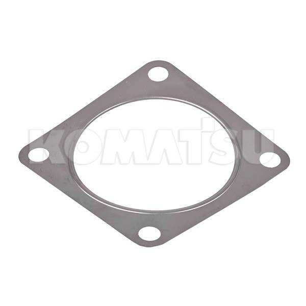 Muffler Manifold Gasket with dimensions 13.2 x 13.2 x 0.1 cm. Suits various Komatsu Wheeled Loaders models.