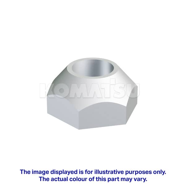 Hexagonal Metal Nut with dimensions 1.7 x 1.7 x 0.9 cm. Diameter: 10mm. Thickness: 9mm. Suits various Komatsu machines.