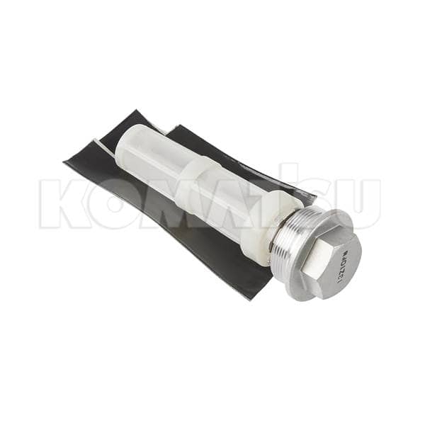 Threaded Strainer Component with a metallic threaded end and plastic cylindrical body. Fits Komatsu models PC300-3, D375A-1, PC400-3, HD465-3. Weight: 0.0226 kg.