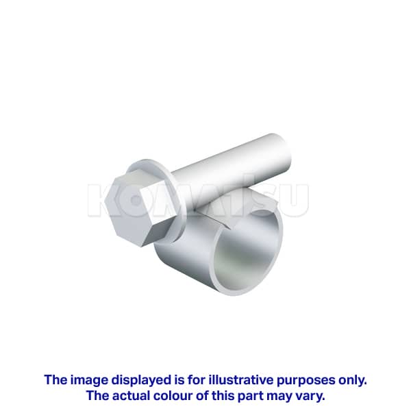 Metal Hose Clamp with blue screw mechanism and ridged texture. Dimensions: 2.5 x 3.5 x 1.0 cm. Suitable for various Komatsu machines.