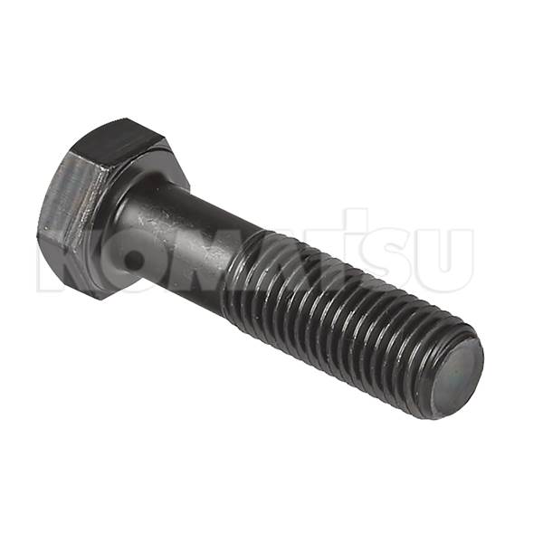Black hexagonal bolt with partially threaded shaft. Fits Komatsu models SK714-5, PC45R-8, PC12R-8, PC35R-8, SK1020-5, SK815-5, PC15R-8.