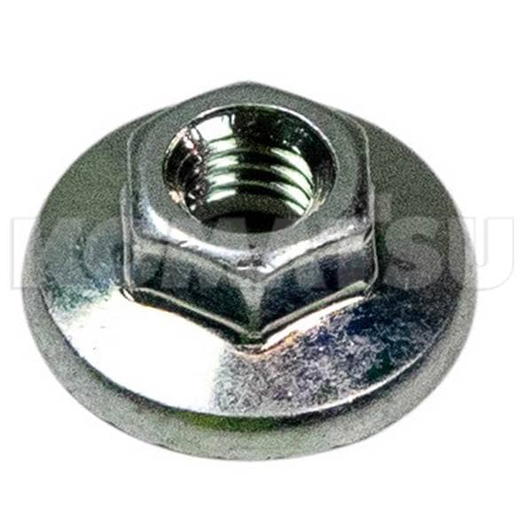 Hex Nut with integrated Washer, dimensions 1.5 x 1.5 x 0.6 cm. Suits various Komatsu Excavators and Wheeled Loaders.