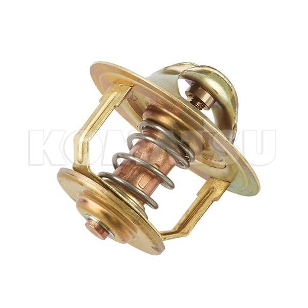 Mechanical Thermostat with dimensions 8.5 x 8.5 x 8.5 cm. Designed for Komatsu engines to regulate coolant flow and maintain optimal operating temperature.