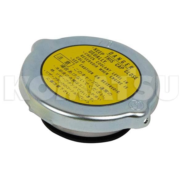 Radiator Cap with dimensions 6.35 x 8.89 x 8.89 cm. Fits Komatsu models WA500-6, WA500-7, HM400-1, HD325-6.
